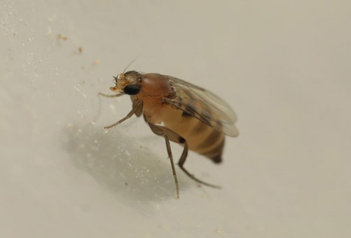 蚤蠅 (Phorid fly) 外型與果蠅相似,為小型的蠅類,較明顯的外部特徵為胸部背板隆起,故又名為駝背蠅。成蟲會因食性不同而為後代尋找不同的棲所或寄主。果蠅行動較慢,蚤蠅則可以非常快速地在平面上疾行。又因為容易在墓園、棺材附近出沒,也有棺材蠅(coffin fly)之稱。除駝背的特徵外,其他特徵包括複眼黑色、觸角鞭節膨大、後足腿節膨大,翅在接近身體部位的翅脈較粗且短,其他翅脈則較細、不明顯。